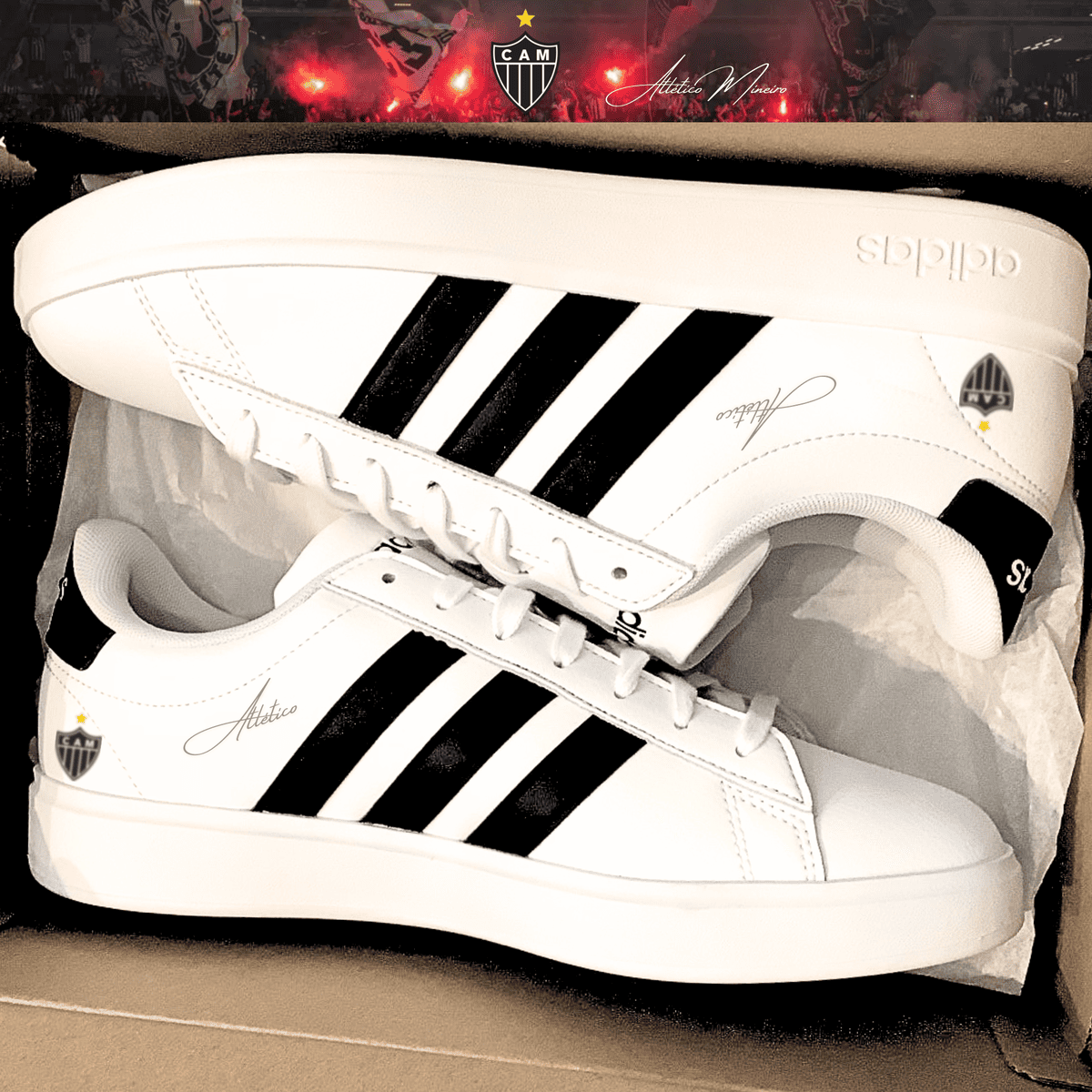 Nome: Exclusivo: Tênis Grand Adidas Court Signature Customizado Galo Atlético Mineiro Mineiro + *BRINDE 1x Caneca Oficial* - EDIÇÃO LIMITADA
