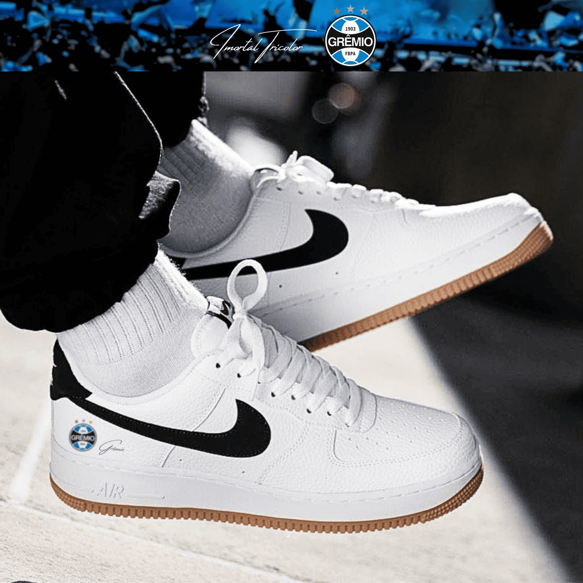 Exclusivo: Tênis Air Force White Black Obsidian Signature Customizado do Grêmio + *BRINDE 1x Caneca Oficial* - EDIÇÃO LIMITADA